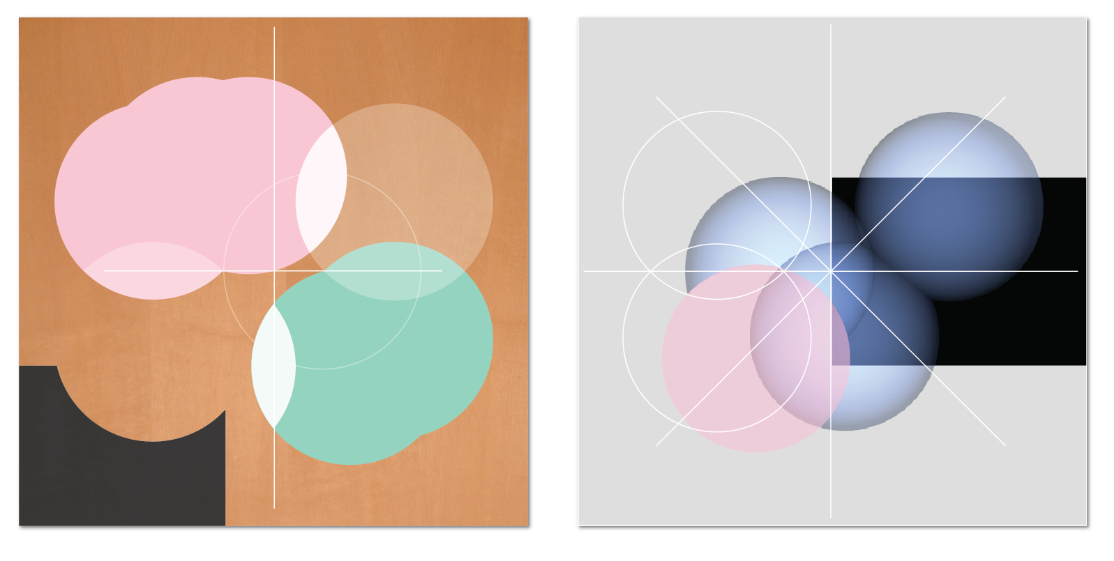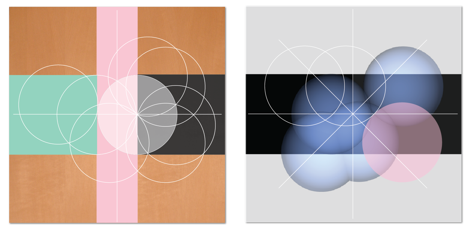 The geometry for the paintings and the 3D-modelled computer forms is the same.