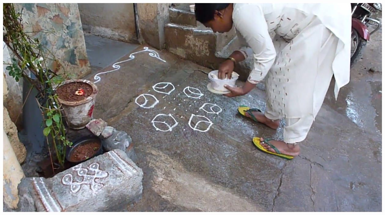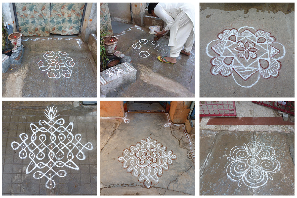 Rangoli are traditional geometric patterns generally made by women at the threshold early in the morning.